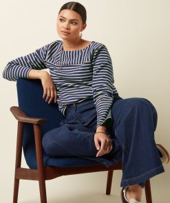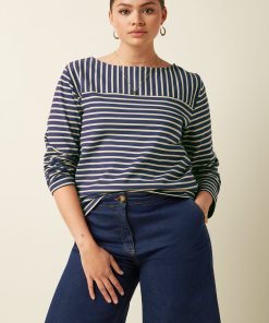 King Louie Women’s Discover Boatneck Yoke Top Britney Stripe | Rhodonite Blue – Britney Stripe