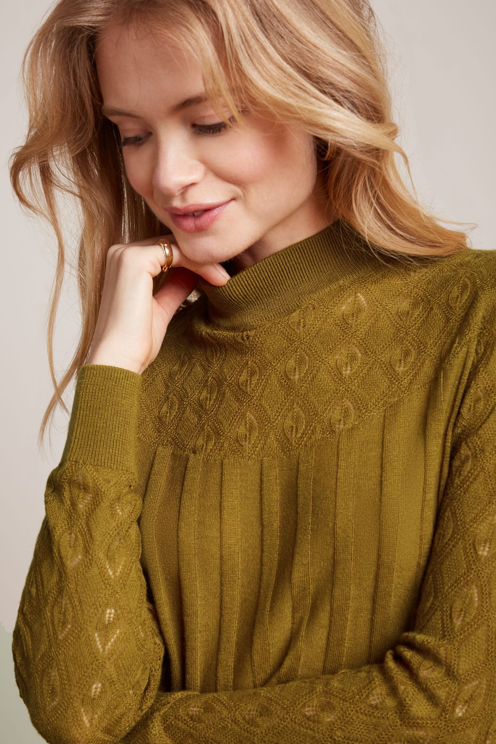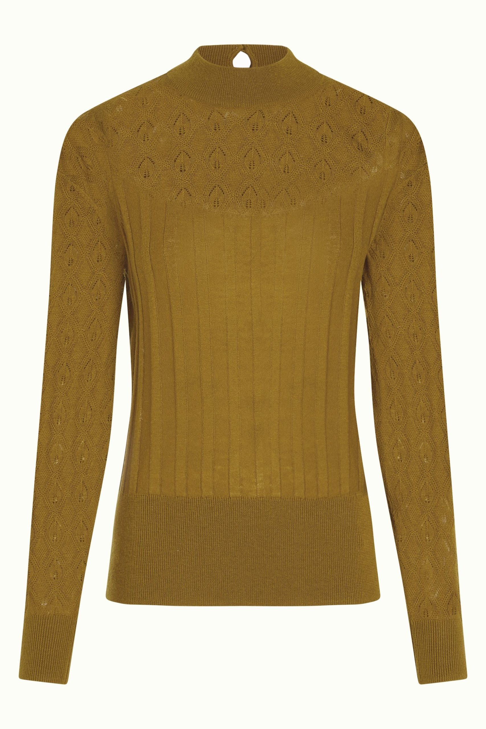 - Openwork motif on the shoulder yoke and sleeves