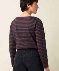 Our Boatneck Top showcases a nautical vibe with jersey stripes and is available in two color combinations.