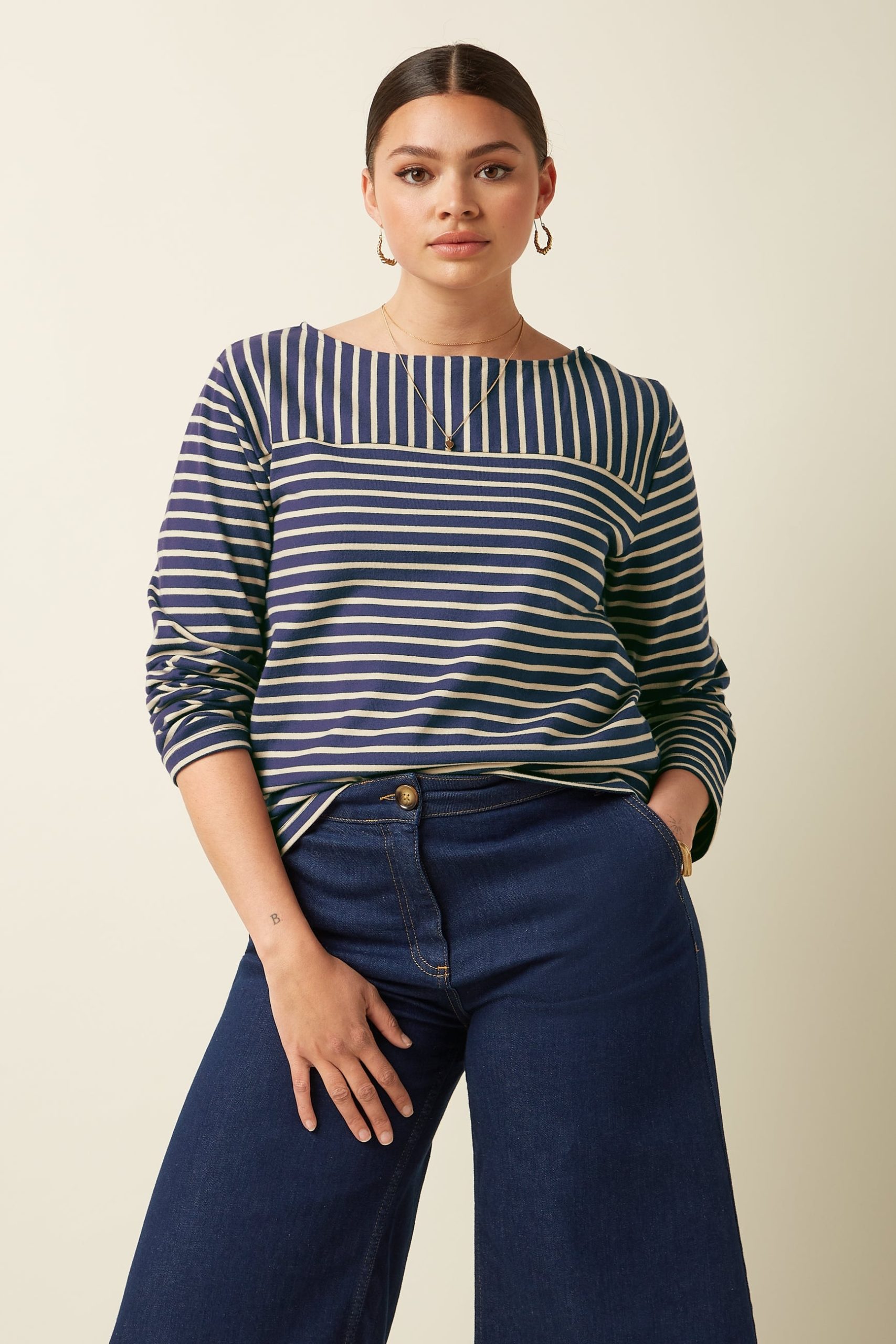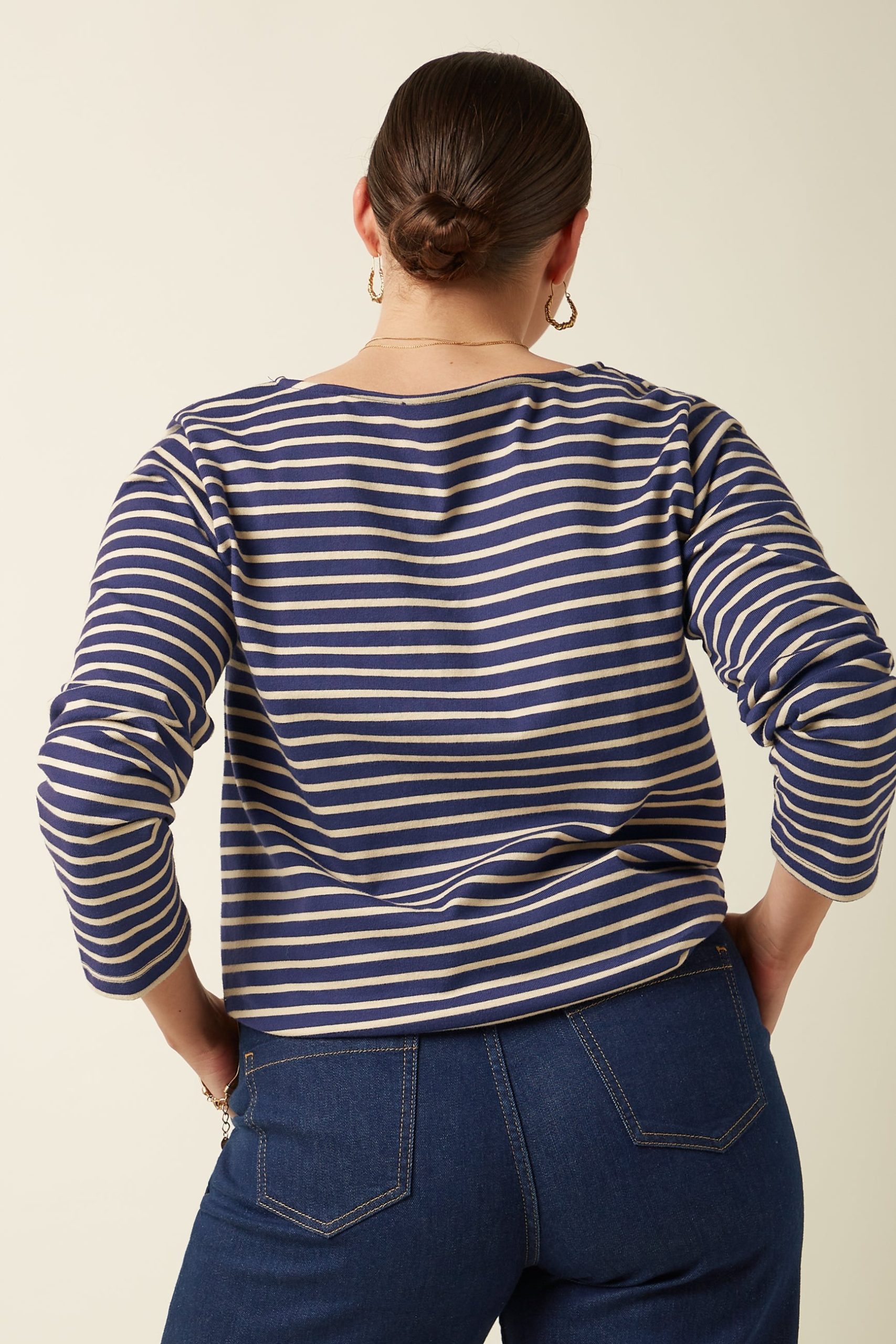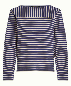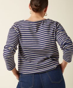 Our Boatneck Top showcases a nautical vibe with jersey stripes and is available in two color combinations.
