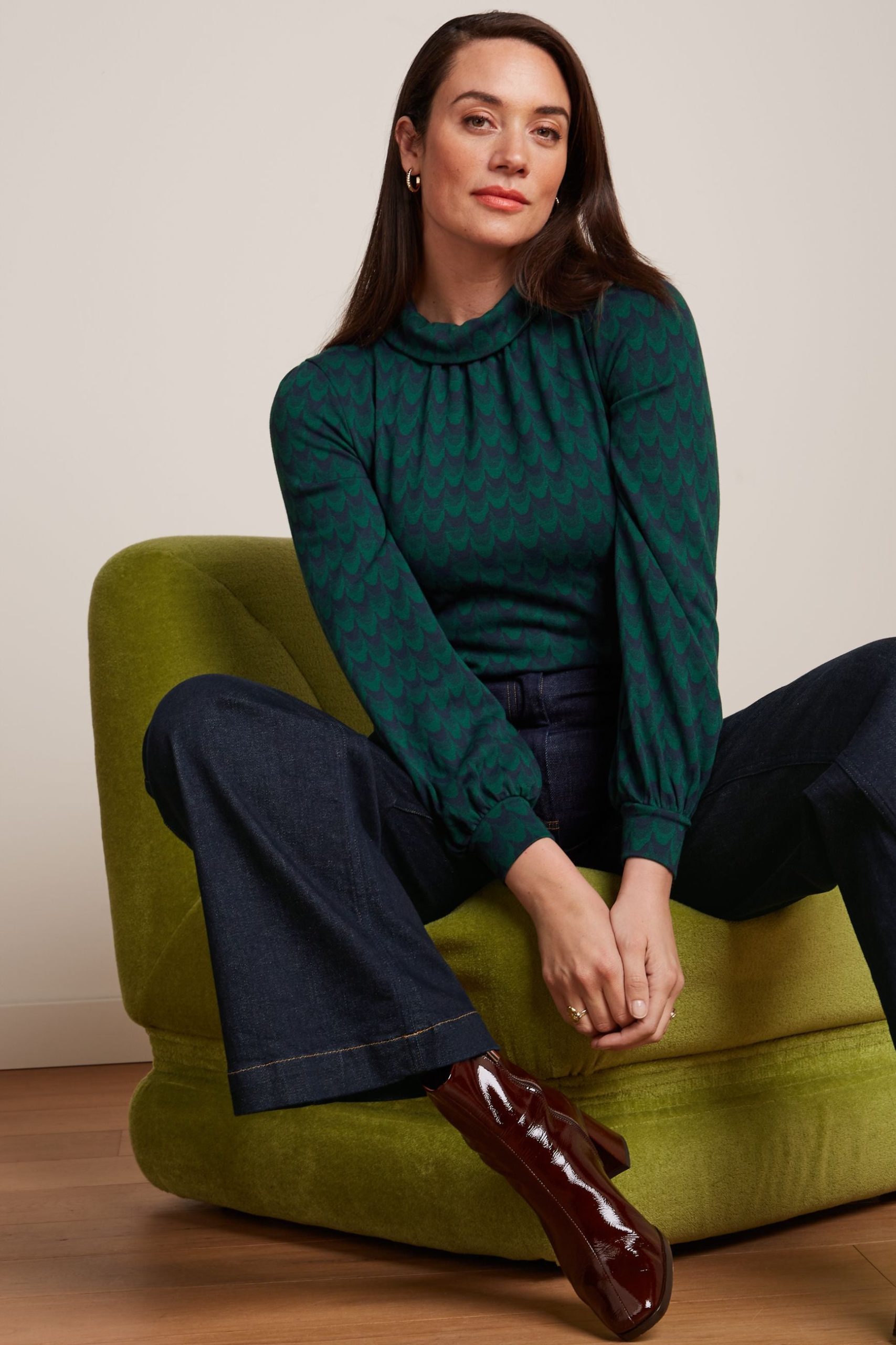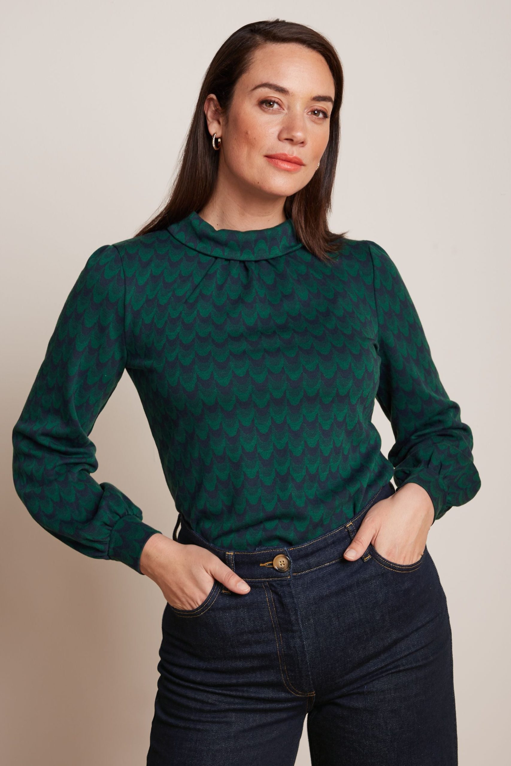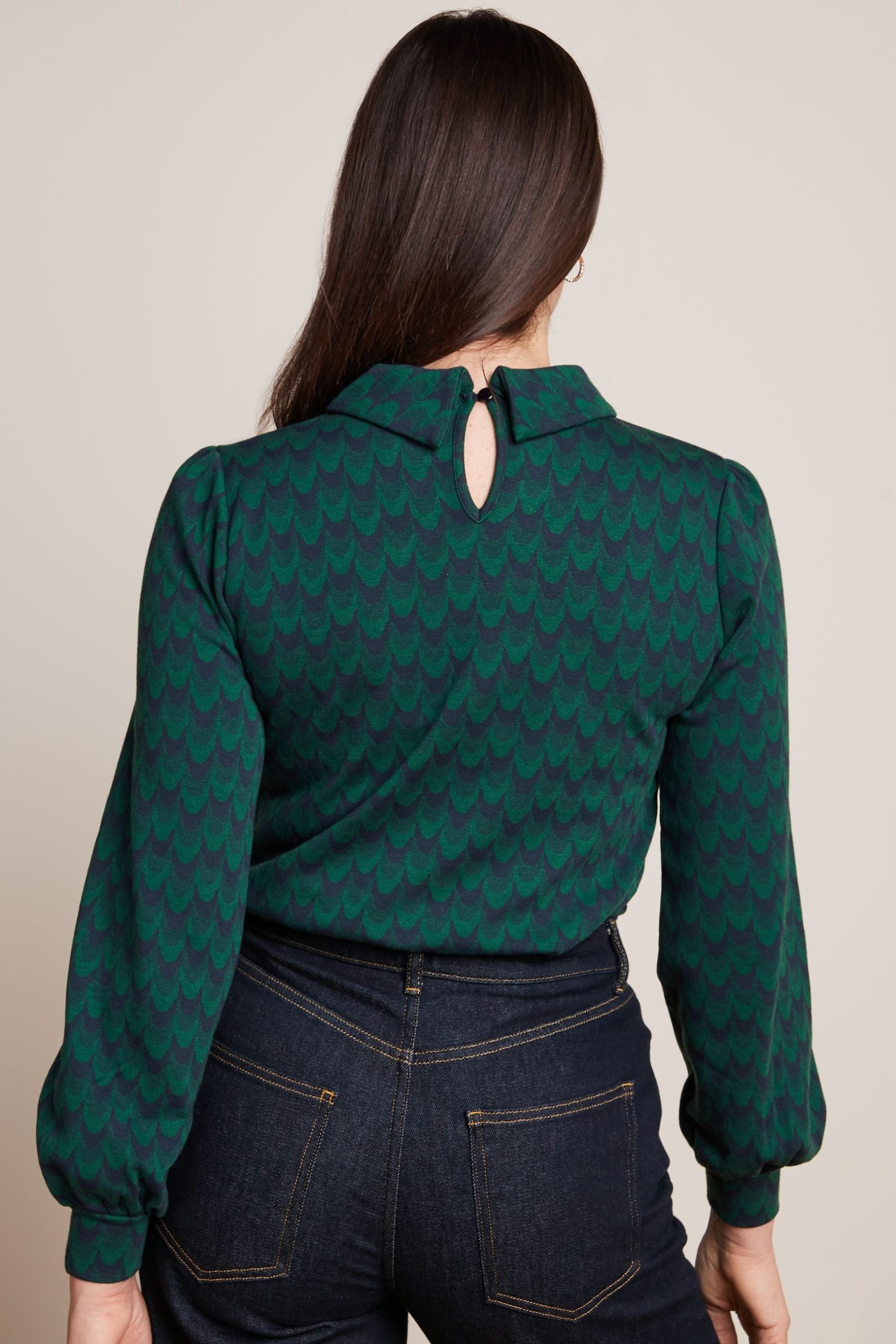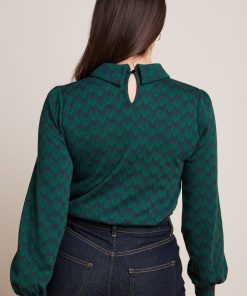 King Louie Women’s Discover Dita Top Bell Sleeve Duffy Jacquard | Evening Blue – Duffy