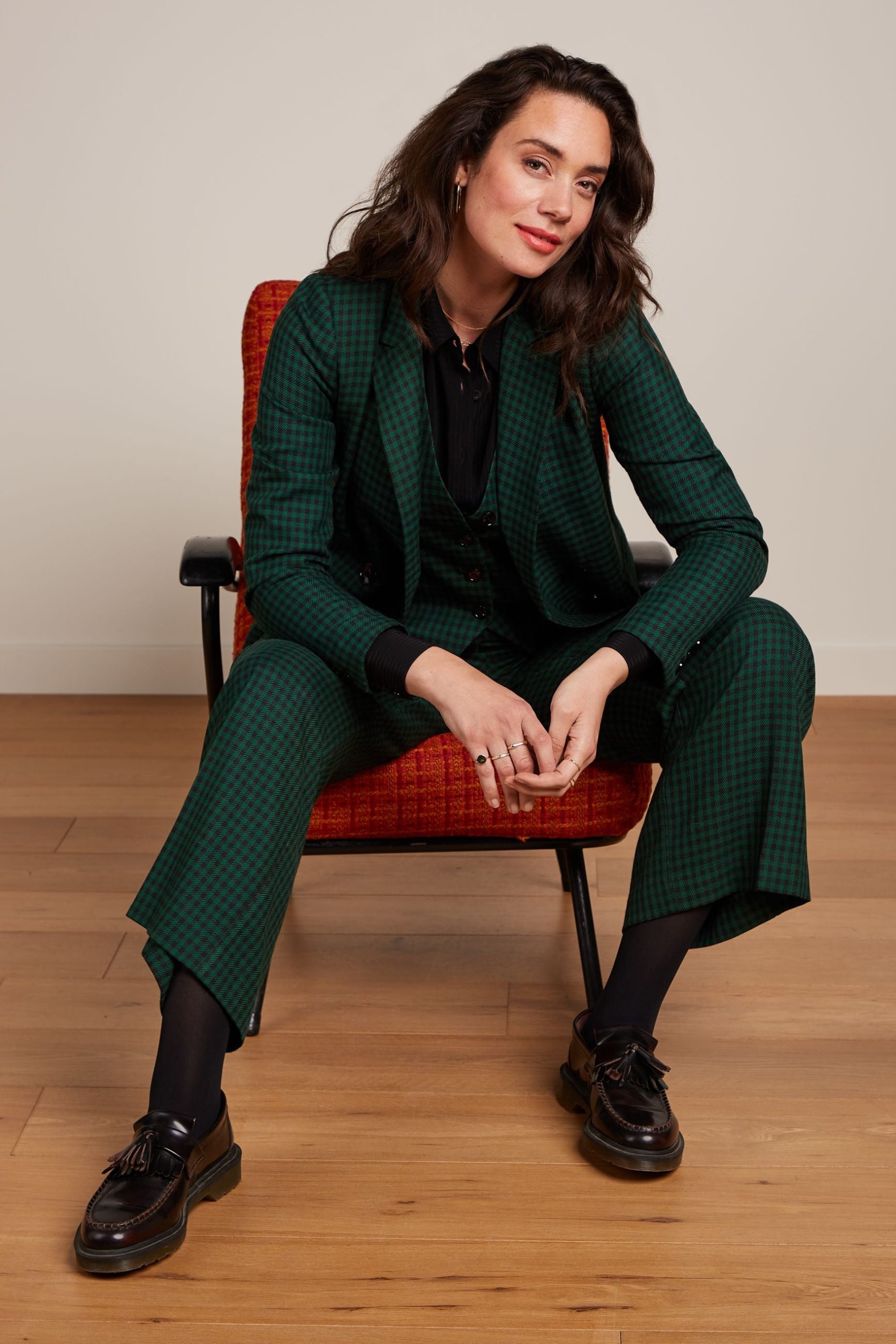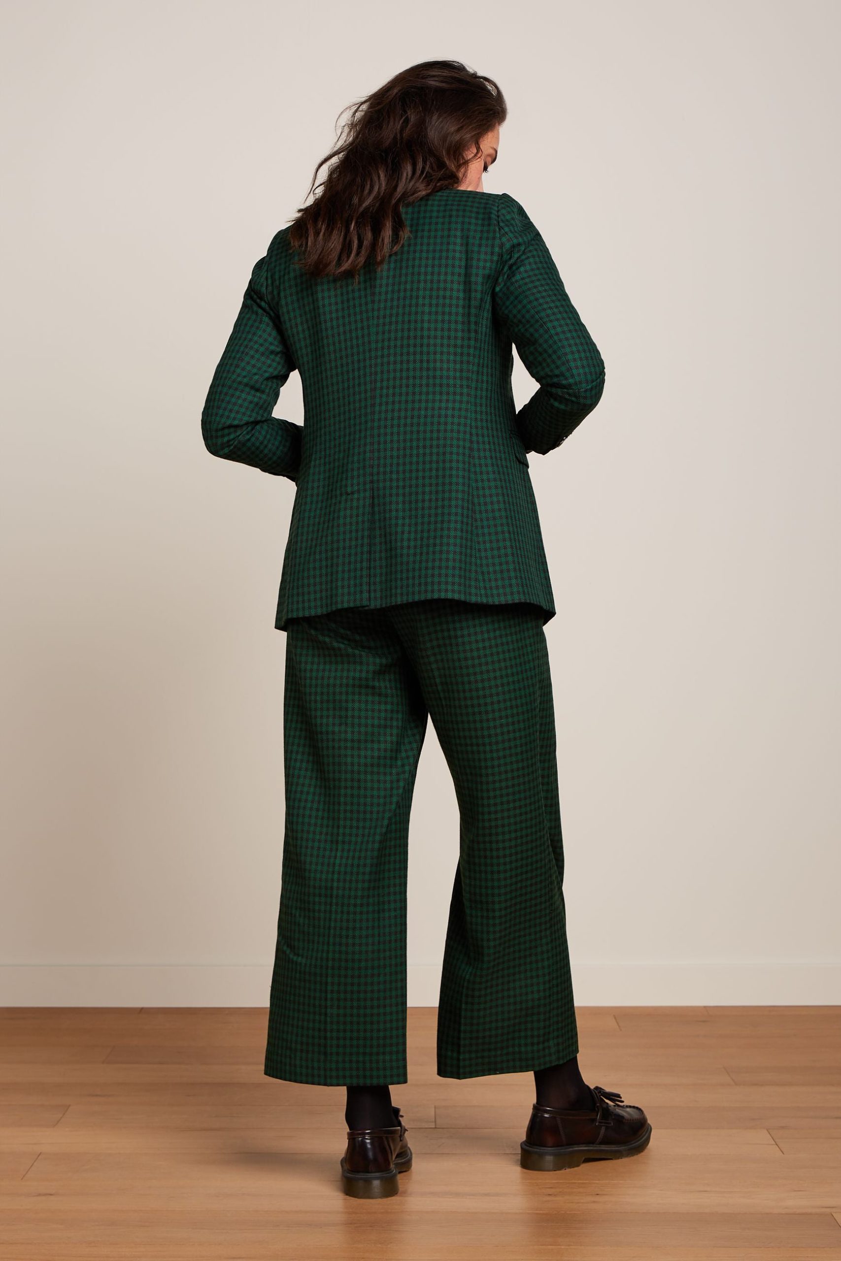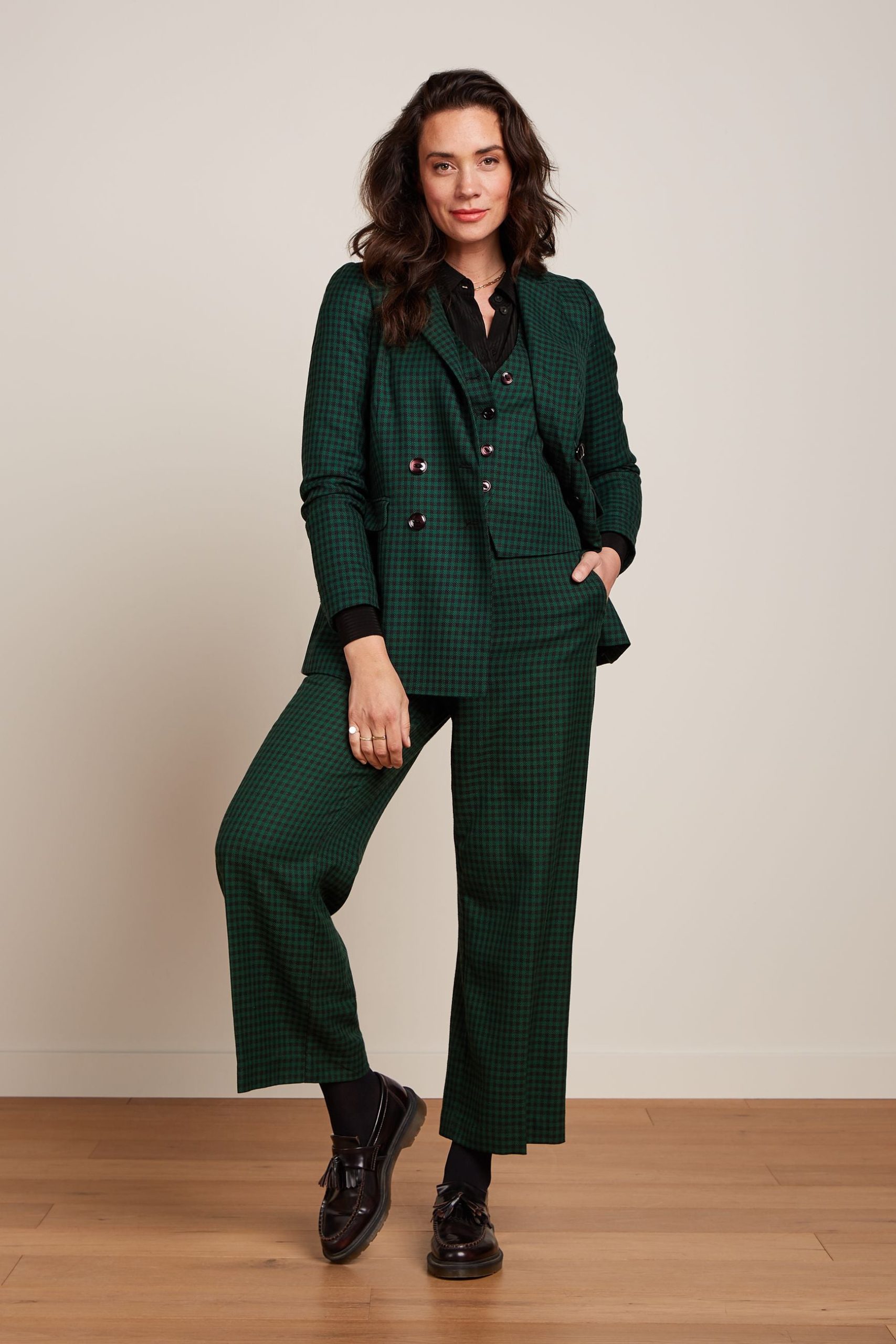 - Mid-rise trousers