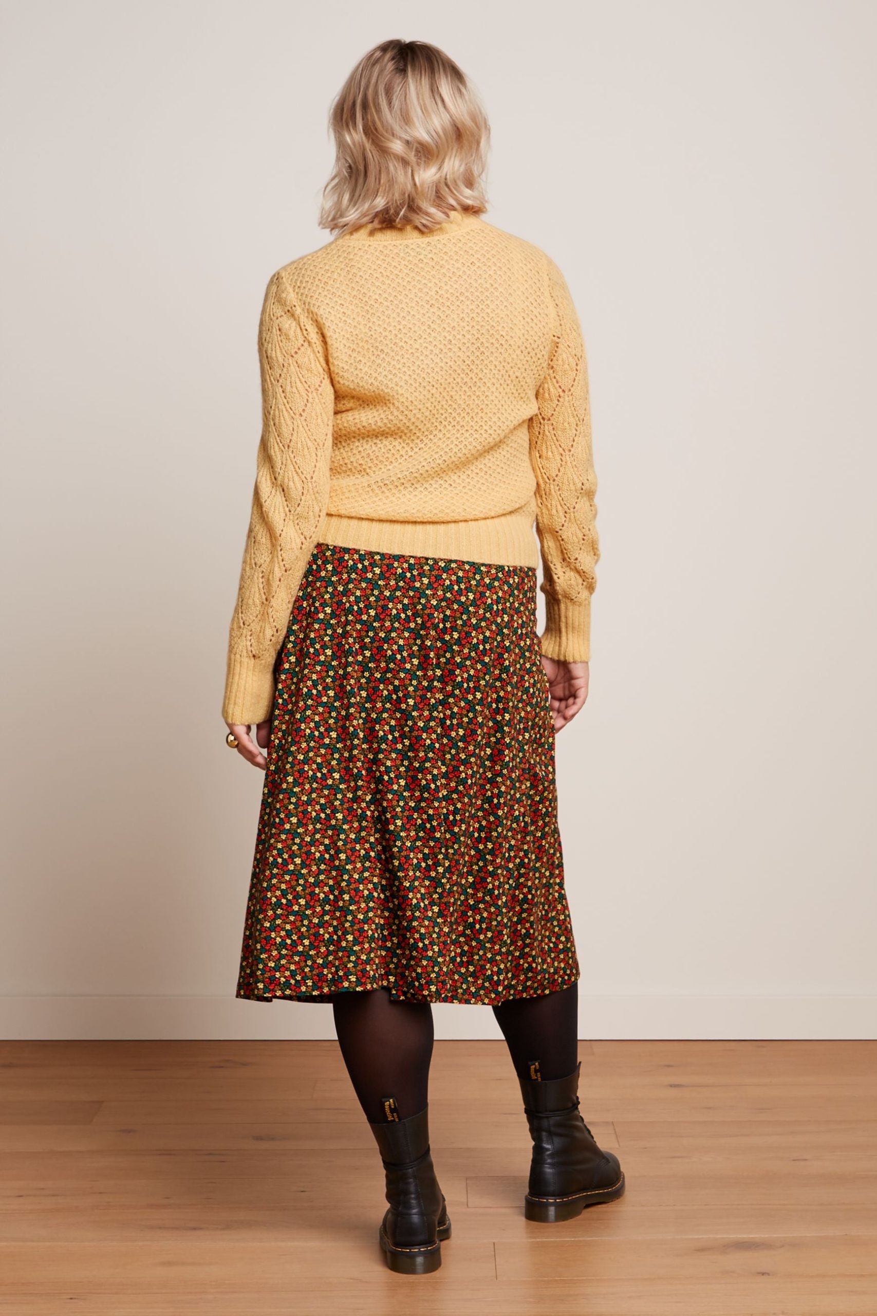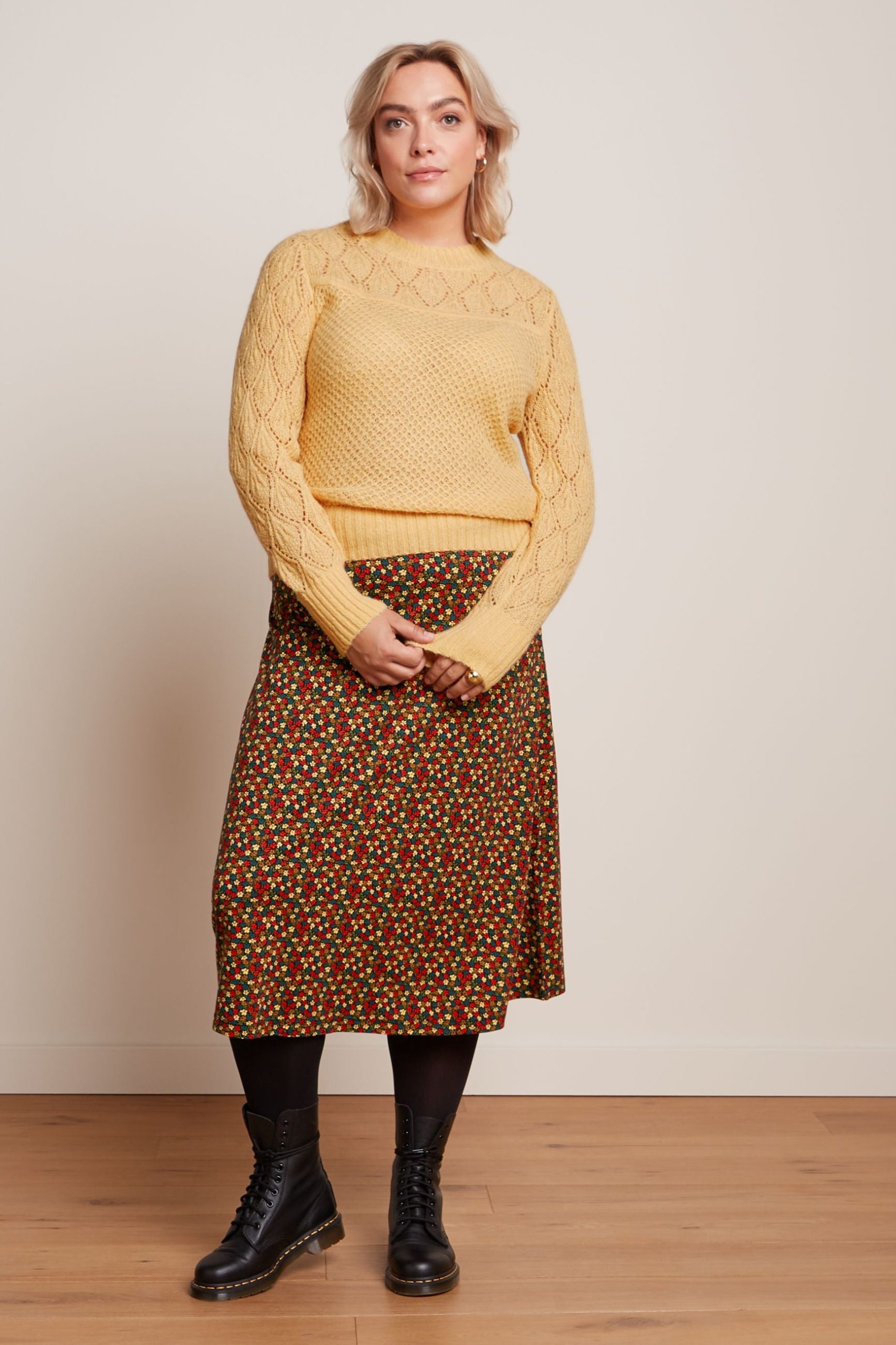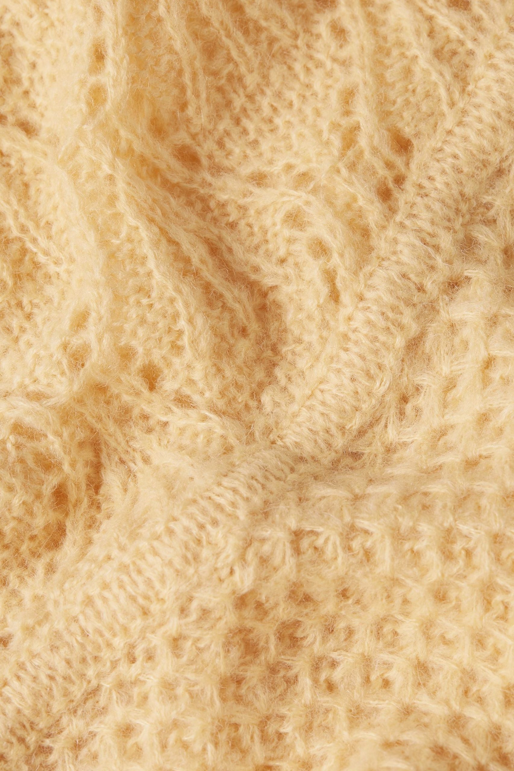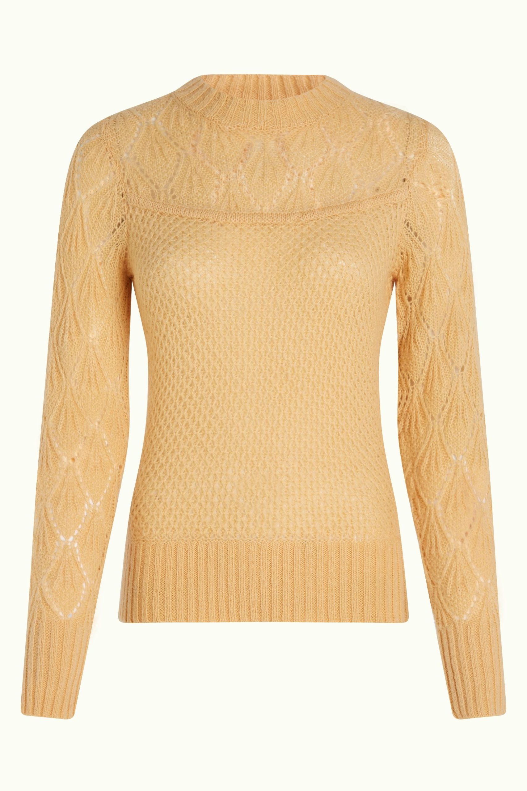 - Open-knit yoke and sleeves