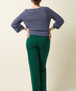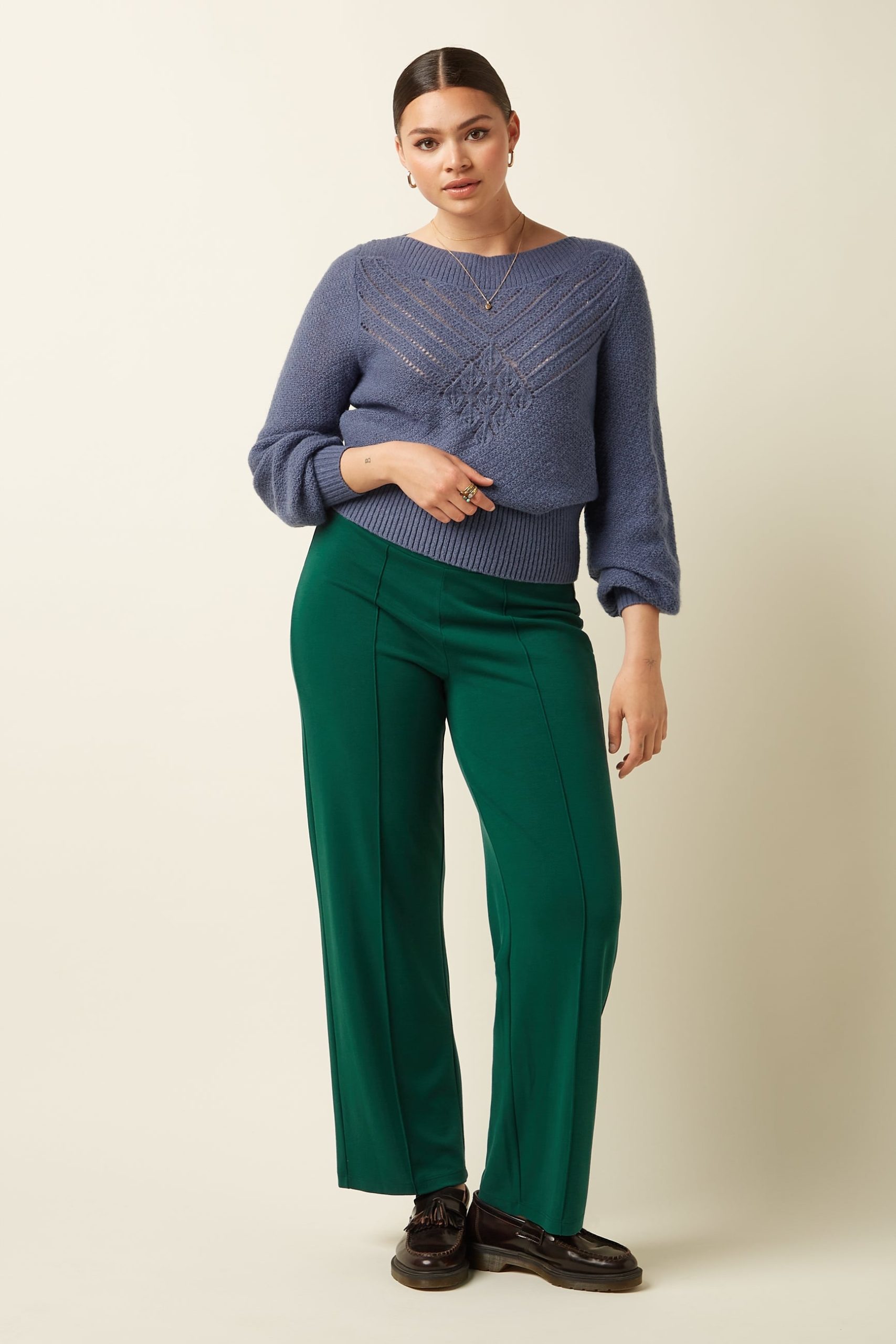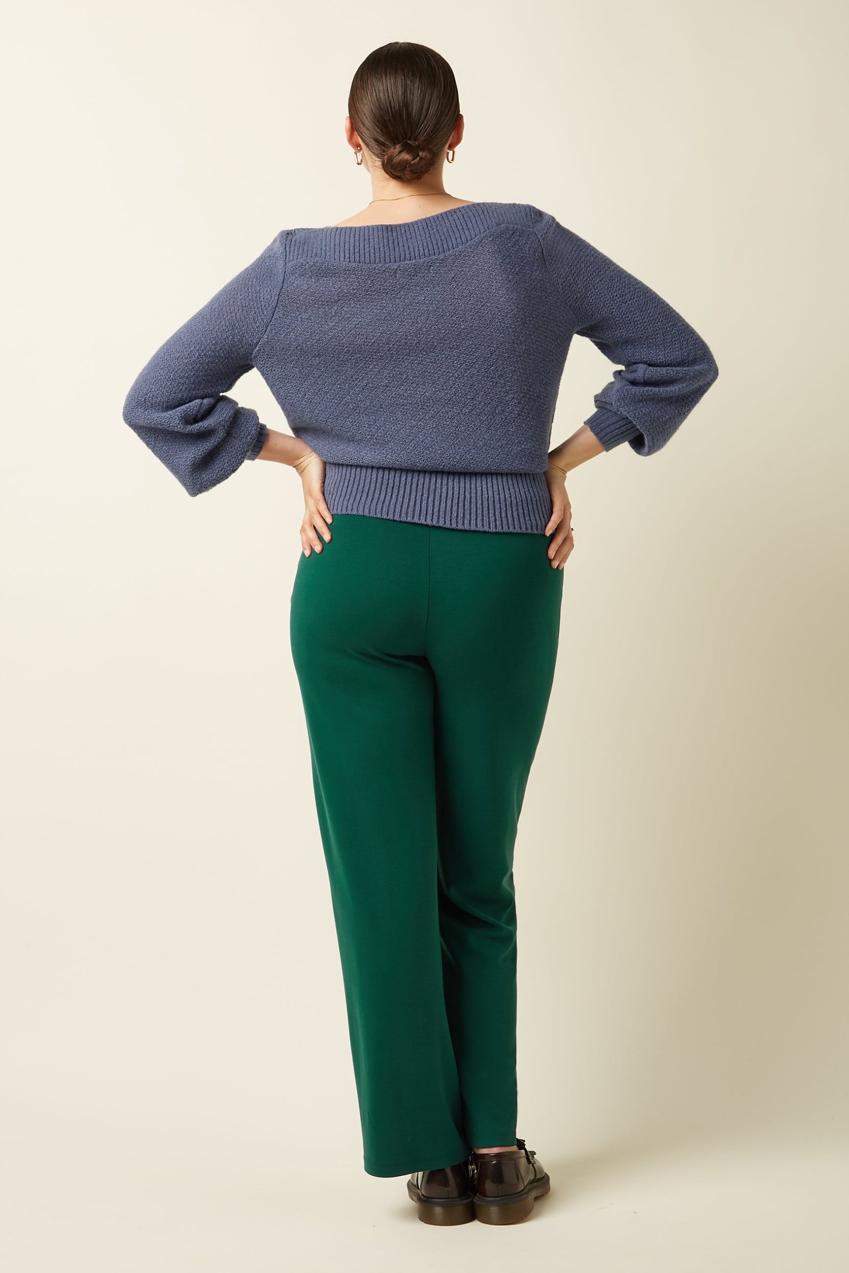 Border Pintuck Pants combine stretch viscose, elastic waist, and wide legs with sleek piping and slanted pockets for effortless style and comfort.