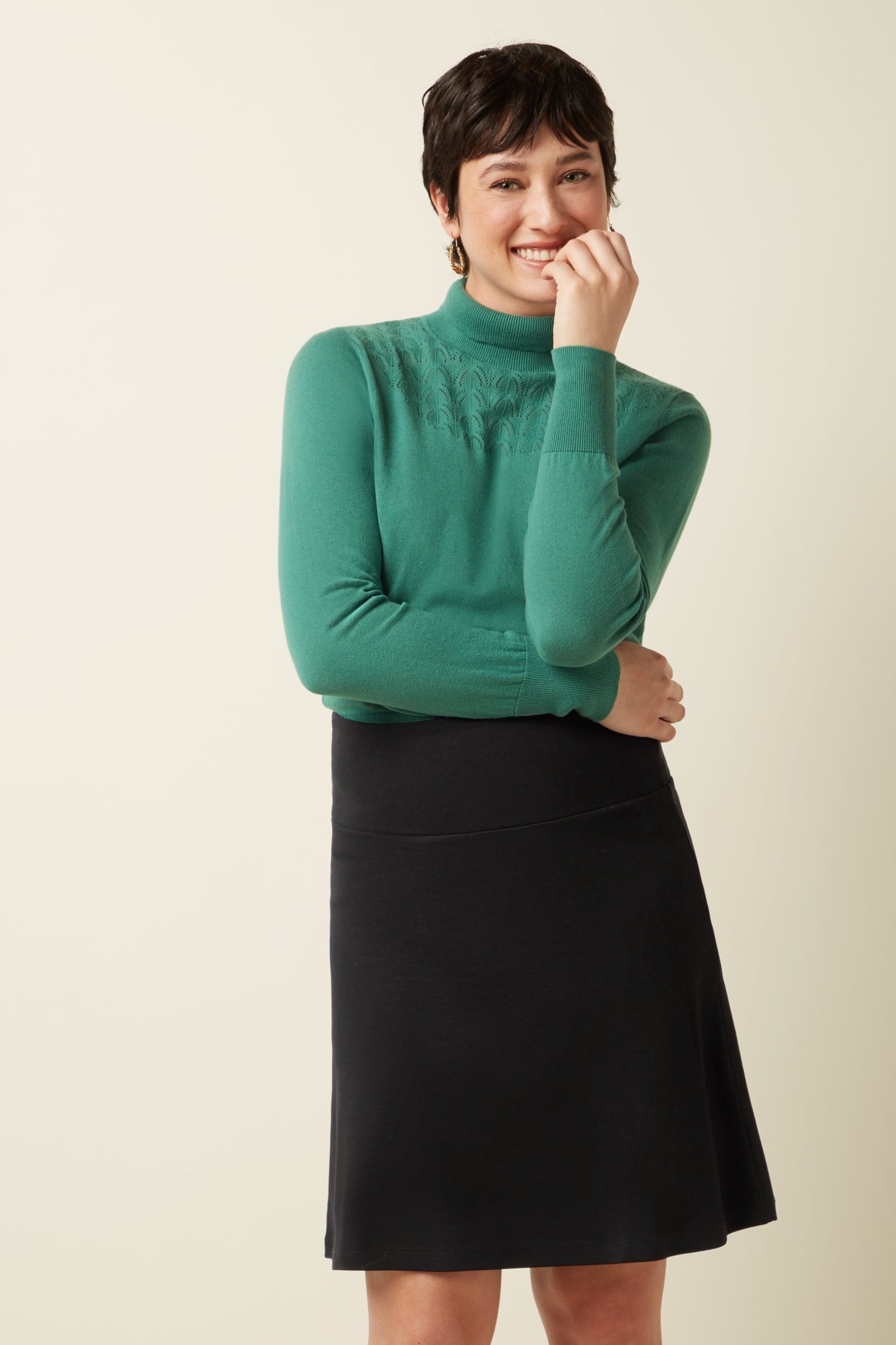 The Border Skirt Milano Uni offers a sophisticated silhouette with its A-line shape and mid waist design. Crafted from stretchy viscose jersey, it features a wide elastic waistband for comfort and a flattering fit. Knee-length and elegant, it’s perfect for refined, everyday wear.