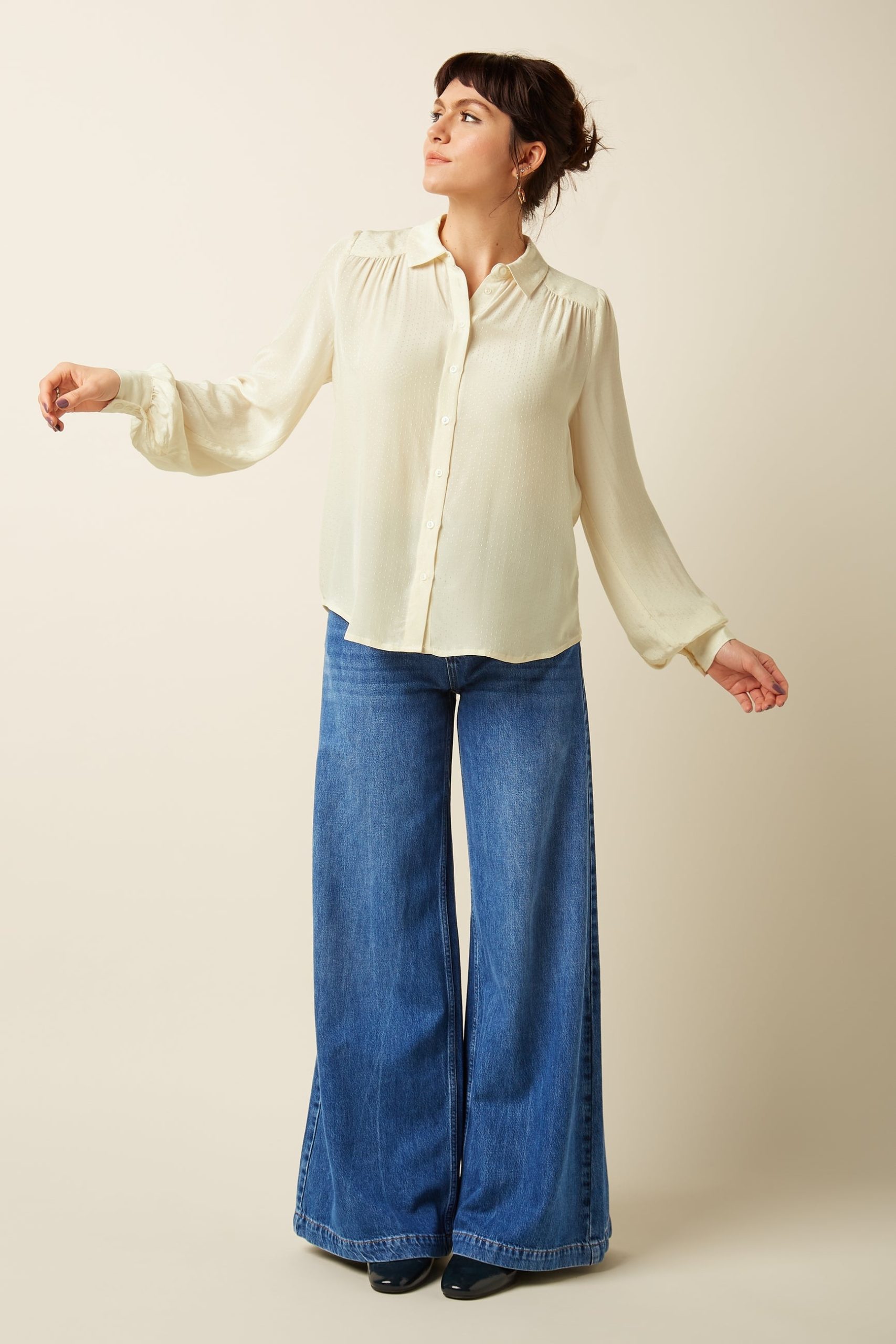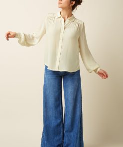 The Carina Blouse Sista combines a classic collar and button closure with long sleeves featuring cuffs and delicate pleats from the shoulder yoke and sleeves. Made from soft woven viscose, it offers a refined, elegant look with comfortable wear.