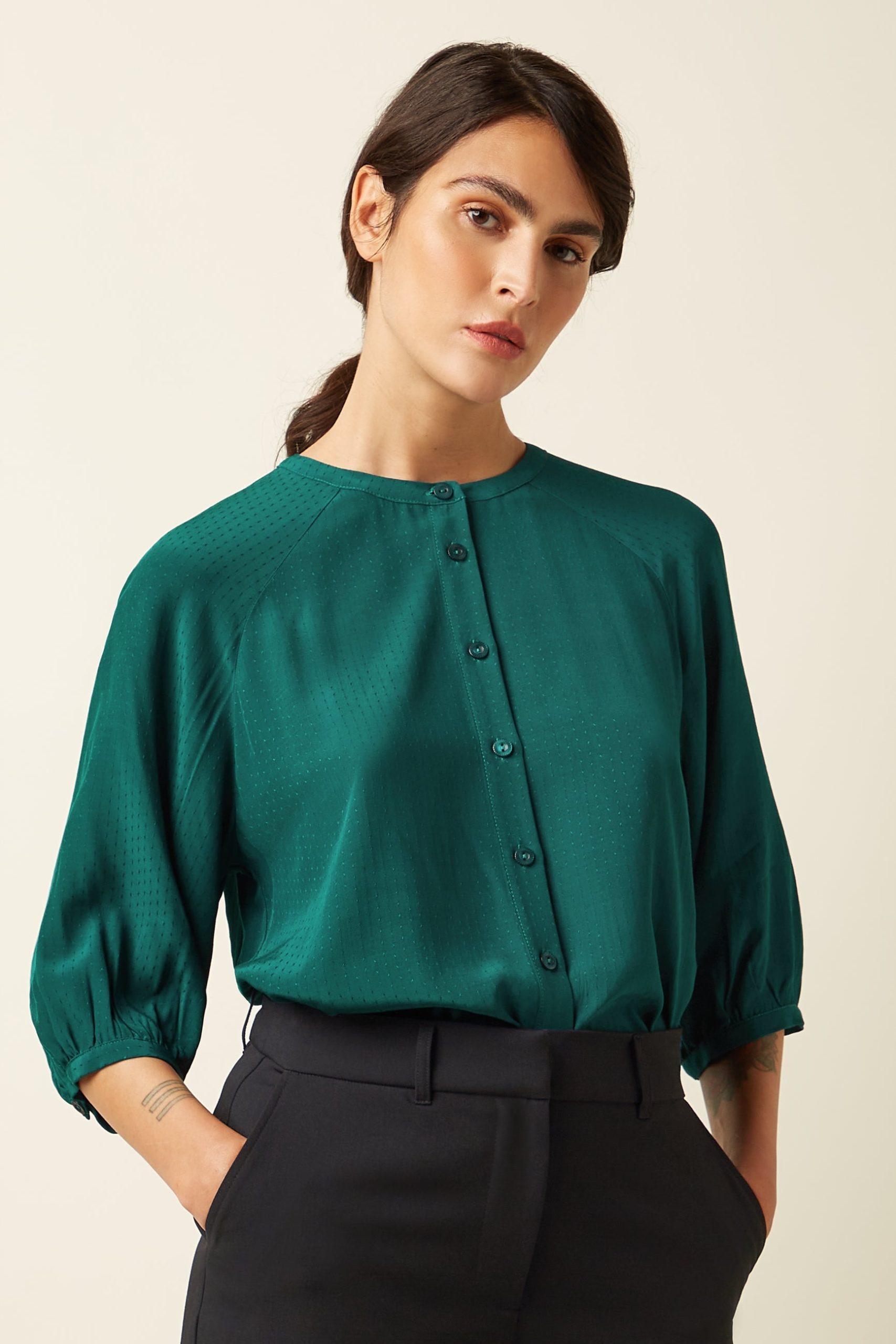 The Cybil Blouse Sista features a small collar and raglan sleeves for a refined silhouette. Crafted from woven viscose, it offers comfort and elegance. The button closure adds a classic touch, perfect for a sophisticated, polished look.