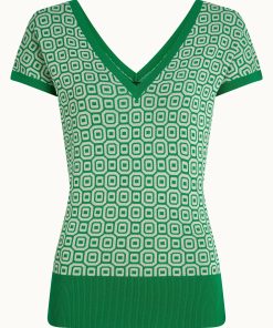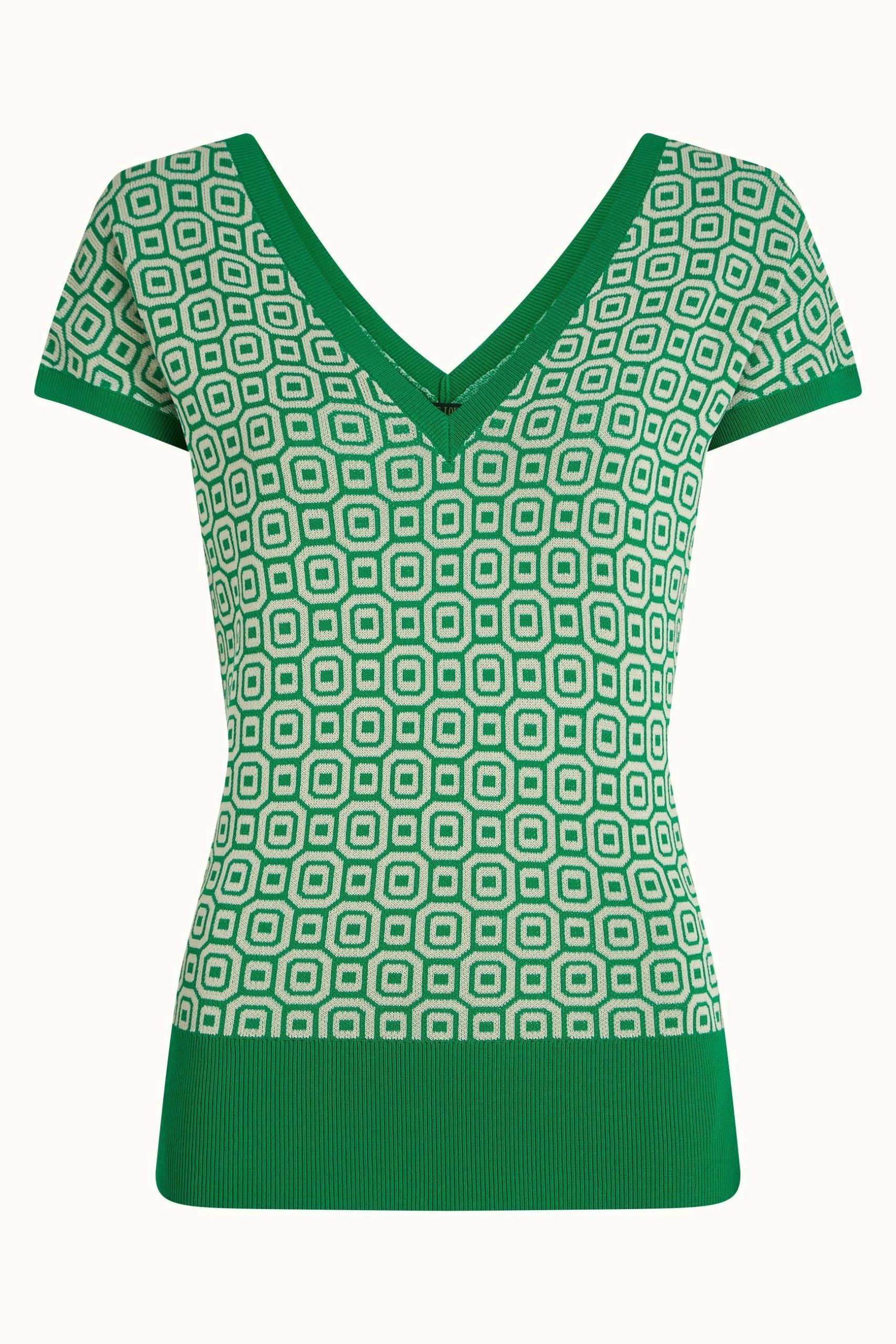 - Top with double V-neck