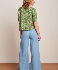 Oversized and cropped blouse featuring side slits for effortless movement.