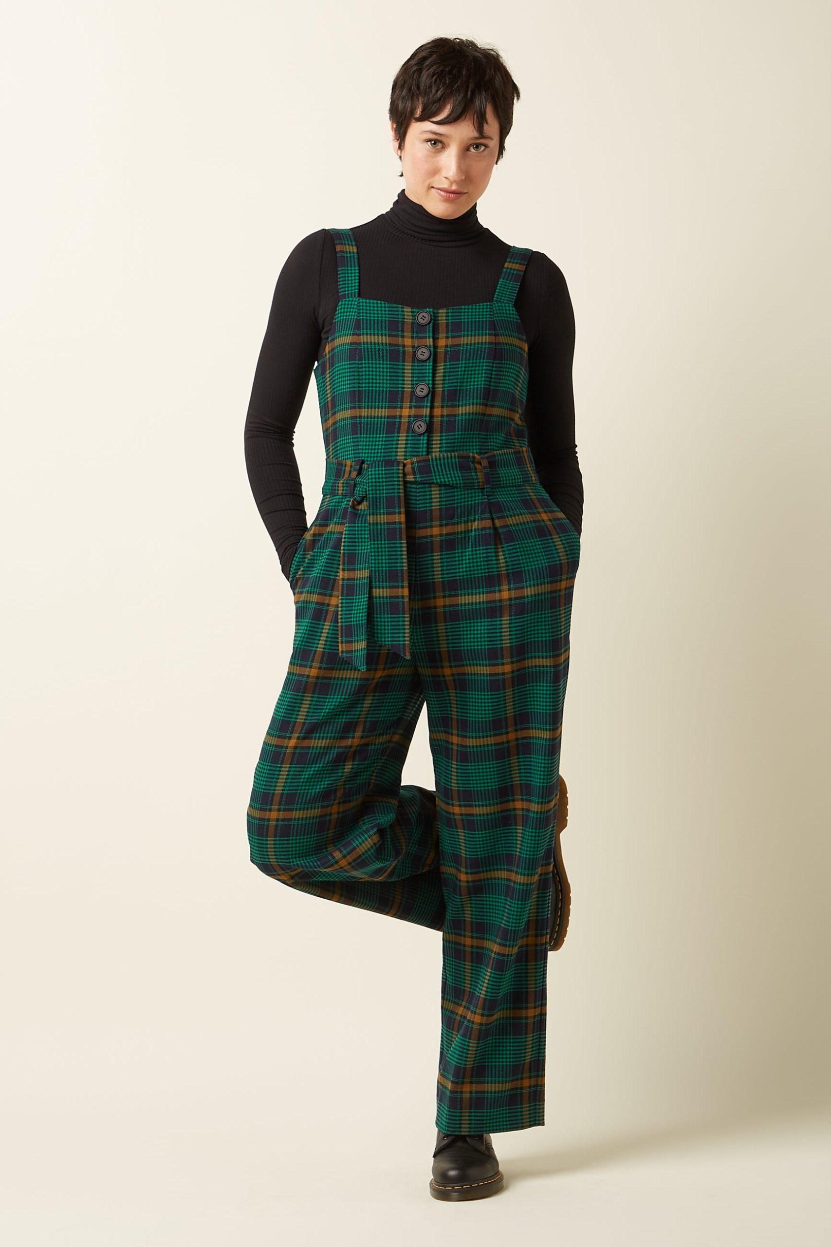 The Ines jumpsuit features slanted pockets and is made from woven polyester with comfort stretch for ease of movement. It includes a tie belt and a floral pattern, with a sleeveless design and a long, straight fit. The button and zipper closure adds convenience and style.