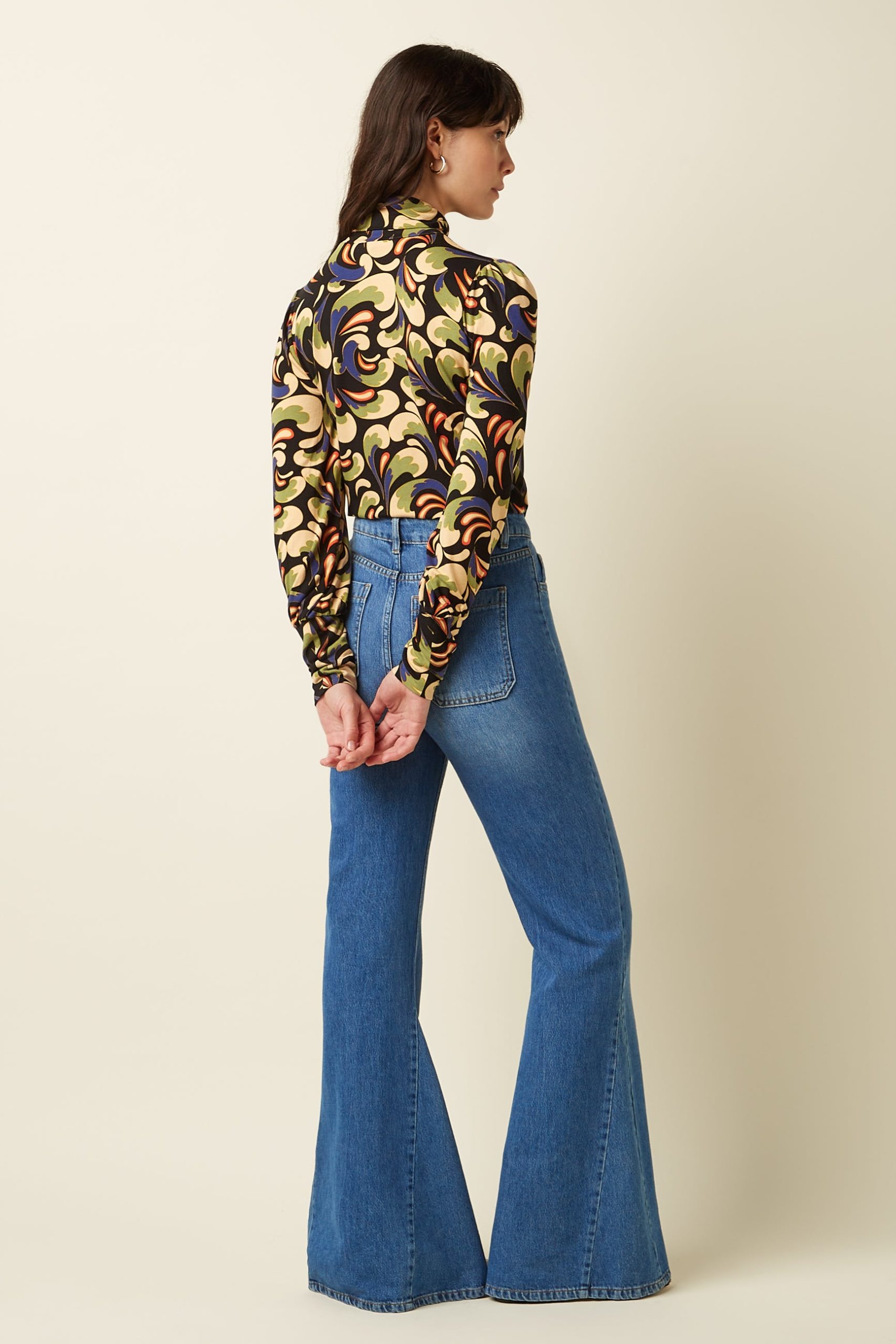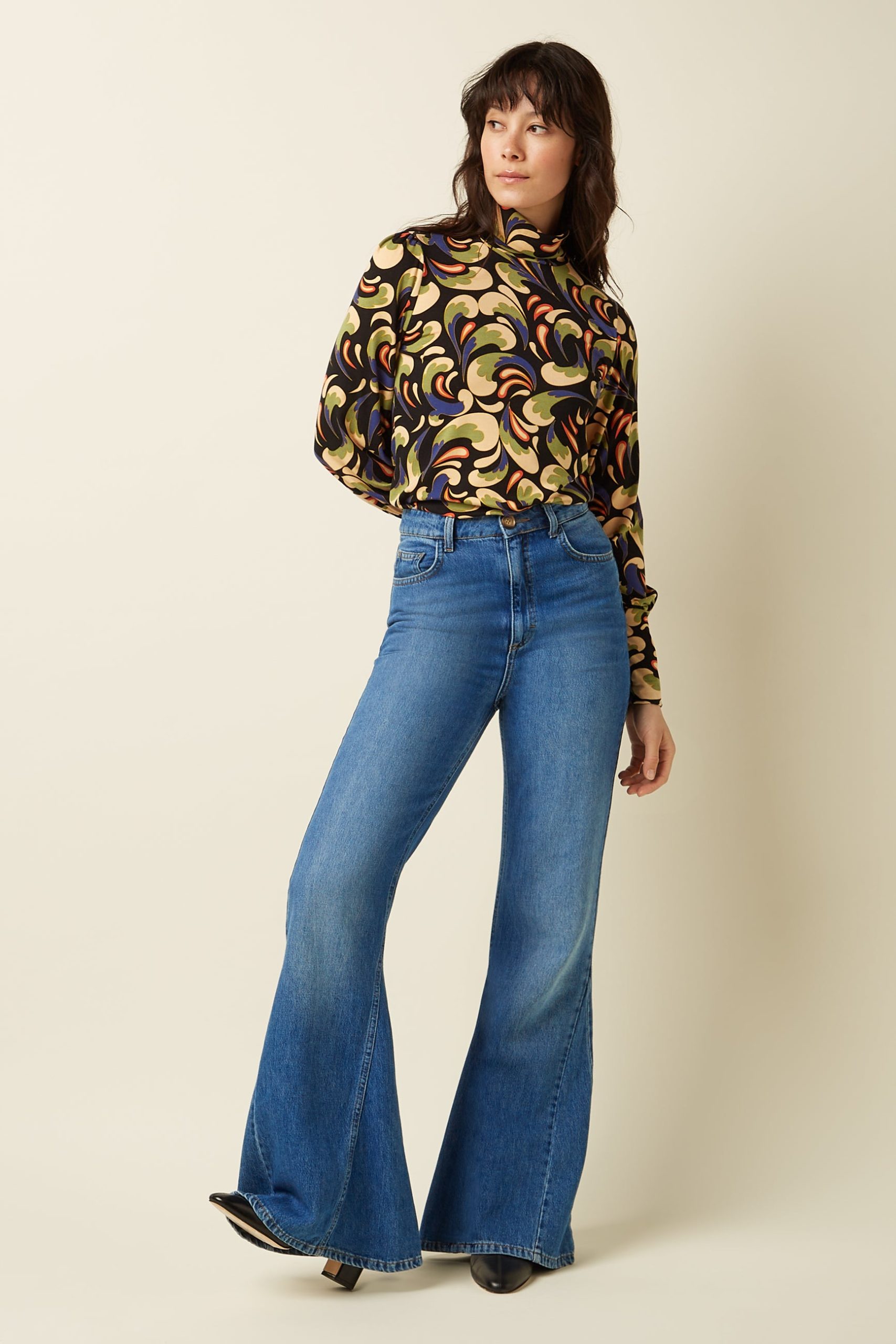 Step back into the ‘70s with our bell-bottom pants, designed with a mid-waist and stylish seam details on the legs to enhance the flare.