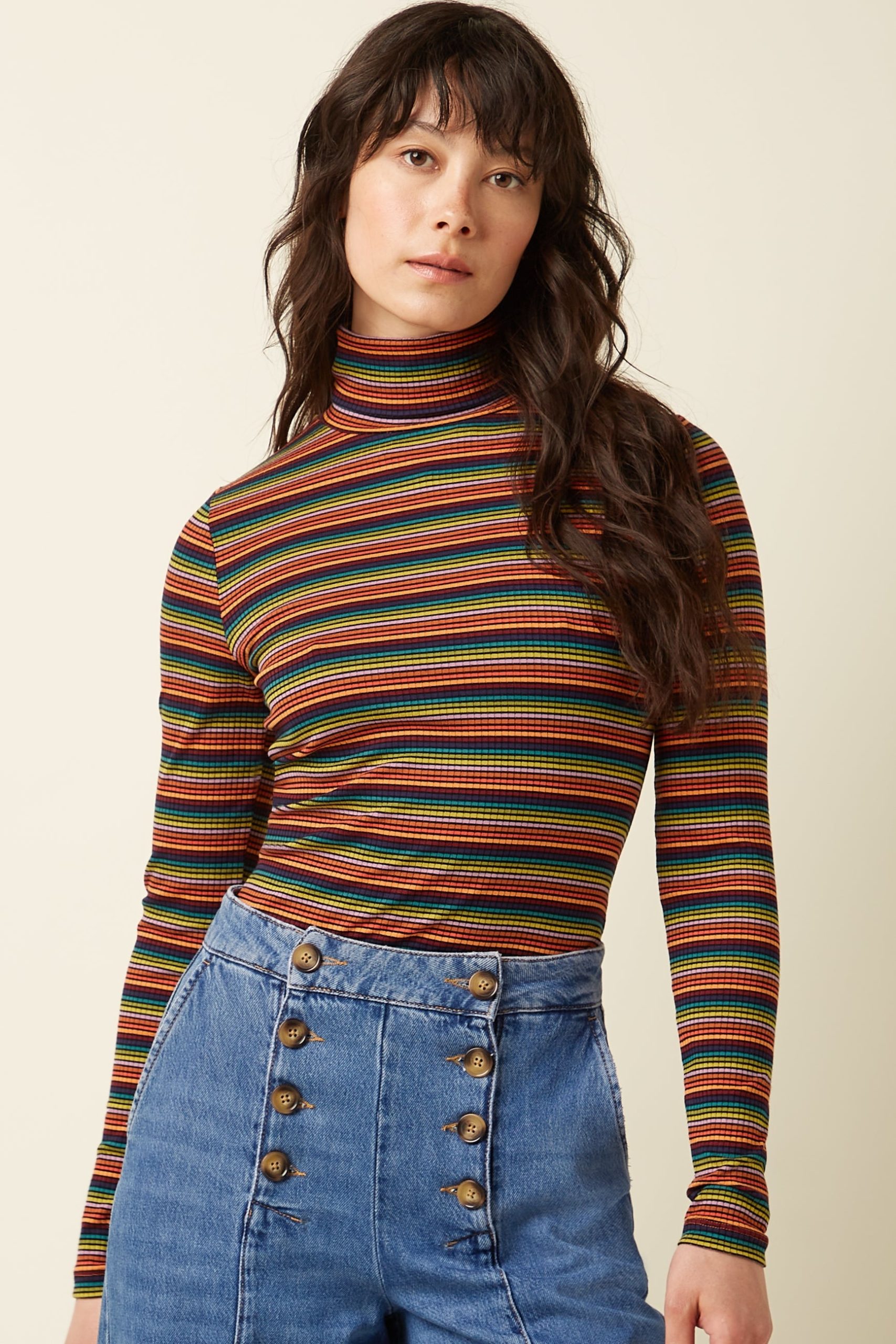 Experience the perfect blend of comfort and style with the Rollneck Top Lumi Stripe. Made from soft viscose jersey with stretch, this striped long-sleeve top offers a flattering fit that moves with you. The elegant turtle-neck design adds sophistication, making it an essential piece to elevate your wardrobe effortlessly.