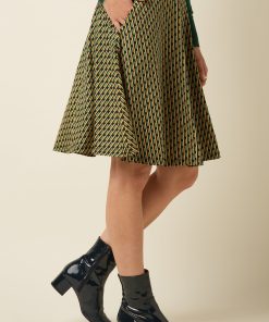 This midi skirt features a comfortable elastic waistband, side pockets, and a flattering flared shape. Made from stretchy viscose jersey with a stylish graphic print, it offers both comfort and flair for everyday wear.
